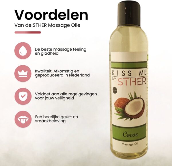 Ben jij opzoek naar een massage olie om jezelf of een ander eens lekker mee te verwennen? Of gewoon even een heerlijk ontspannend moment te creëren. Dan is deze massage olie Kokos van STHER echt de juiste keuze! Gratis verzending.